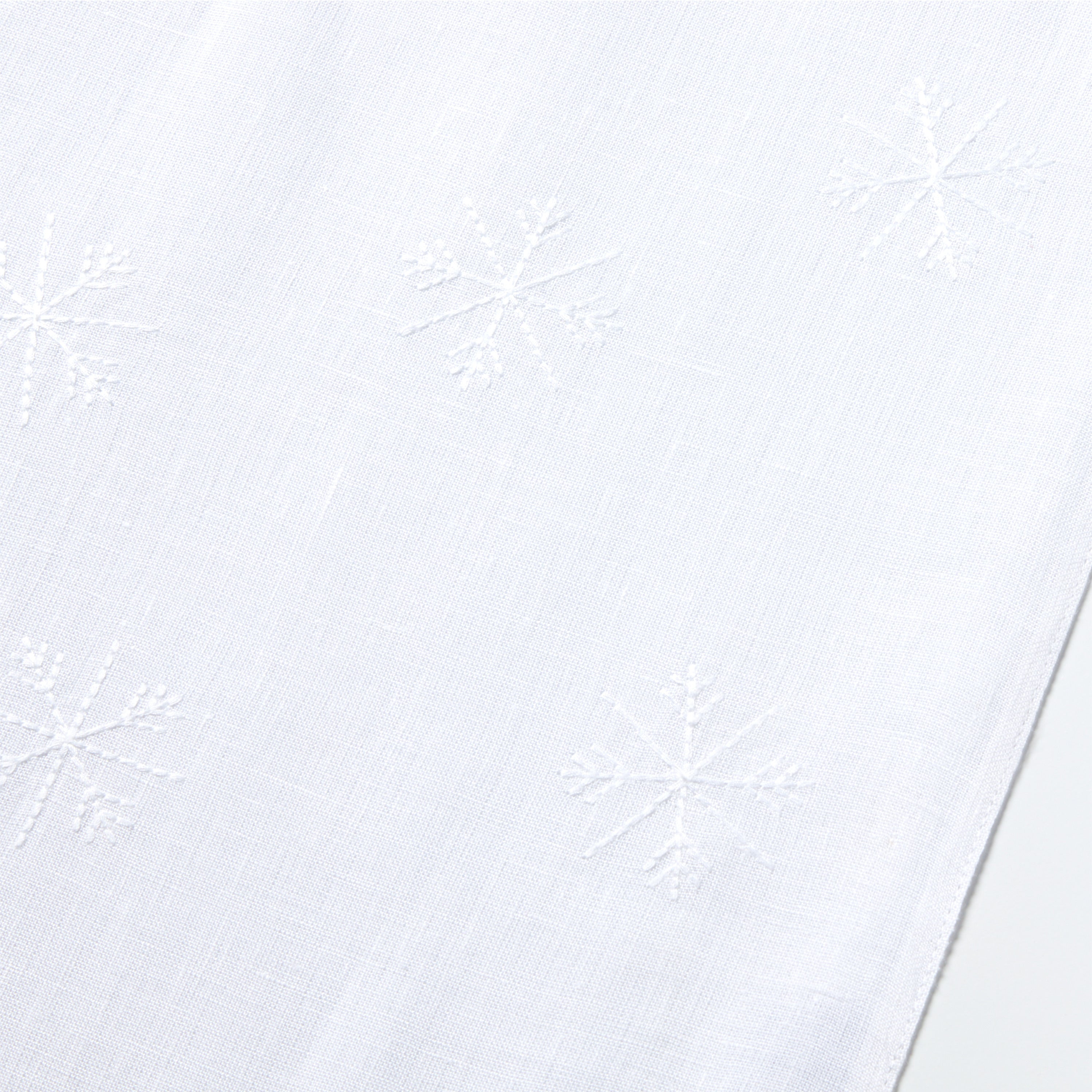 Camino de Mesa Navidad de Lino Bordado con Copos de Nieve