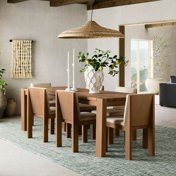 Fabricada en roble blanco macizo con un cálido acabado marrón aplicado a mano, nuestra silla de comedor Terra celebra la belleza rústica de la madera. El aspecto dinámico y anguloso de la silla presenta patas cuadradas que se extienden hasta la parte superior del respaldo de paneles de madera. Los limpios cojines del asiento y el respaldo tapizados en una mezcla de algodón marfil garantizan una estancia cómoda. Para una cocina o comedor coordinados, combine las sillas con nuestra mesa de comedor Terra de color marrón cálido.