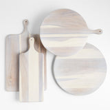 La madera de acacia ricamente veteada se convierte en un elemento esencial para servir, suave y escultural, con un acabado blanqueado que le da un aspecto cálido y orgánico. Adecuada para el uso diario, el entretenimiento o la exposición artística, nuestra exclusiva tabla de servir pequeña se redondea en curvas orgánicas para servir crudités, aperitivos o quesos. Cada pieza está tallada en un único bloque de madera con un asa para pasarla fácilmente. Para una mesa bien coordinada, combine la pequeña tabla de quesos con las otras piezas de acacia blanqueada de nuestra colección Tondo.