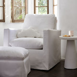 Ever at the ready for everyday life, this welcoming glider chair exemplifies designer Leanne Ford's relaxed aesthetic. Floating a pillow seat and a broad back cushion, the white chair invites settling in for reading, feeding and rocking to sleep. The casual slipcover is made of pure cotton that stands up to real life in a nursery or kid's room. Ever restores its effortlessly chic looks with a quick fluff of the cushions and swipe of the "comfort wrinkles." Pair with a matching ottoman to give your feet a much-needed break.