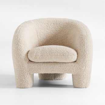 Voluminous form and wraparound comfort. Ono takes inspiration from contemporary Mexican furniture design, breaking away from straight lines with a fully rounded frame and delightfully chunky tripod legs. Sloped arms flow into a tight barrel back to snuggle a cushioned seat. For even more cozy comfort, faux off-white shearling covers every inch with luxurious texture and a supersoft hand.