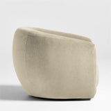 Cozy up to Valen, our contemporary, super-comfortable take on a classic silhouette of modern design. You'll love its sculptural egg-shaped profile, arms that curve a hugging embrace and a swivel that goes a full 360. A slim deck makes room for an extra-plush seat. Neatly tailored in taupe velvet for a luxe feel that is still durable for everyday use, this exclusive swivel chair looks stunning on its own or in pairs.