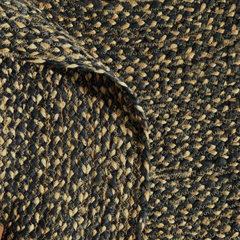 Braids of jute and sisal coil an organically beautiful round rug with satisfying texture. The mix of dyed-black and natural fibers creates intriguing contrast and a delightfully dark twist on the classic jute rug. Artisans weave the fibers by hand, then use manual sewing machines to shape the rug into a circle and finish it with zigzag stitches. Ideal for entryways and other high-traffic areas, our Avesi round braided rug is a Crate and Barrel exclusive. Due to the natural materials, each one is unique.