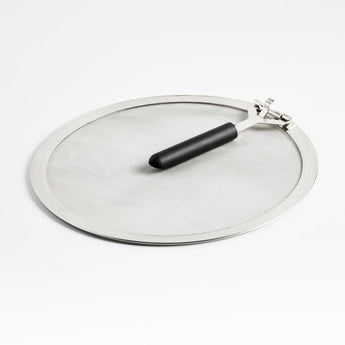 Protecting your stove, countertops and yourself from splattering grease with our signature splatter guard. The handle locks into place during use then folds away for compact storage. Stainless steel shapes a sleek utensil fitted with a black soft-touch handle for a sturdy, comfortable grip. We love the way the refined beveled edge finishes the handle with a dynamic detail. Our exclusive Crate & Barrel soft-touch tools make for a well-outfitted workspace that's up to any cooking challenge.