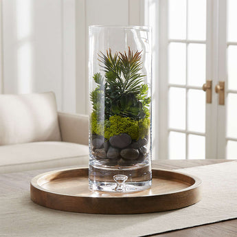 This stunning vase's simple profile is brilliantly accented with a single bubble formed in its thick sham for a clean, classic look.