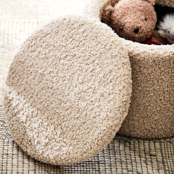 Our Chunky Squares Area Rug brings a modern, plush checkerboard design in a neutral ivory-grey palette to your child's nursery, bedroom or play space. To create each eye-catching rug, skilled artisans weave a blend of supersoft wool and performance fiber in alternating squares of different loop shapes and sizes. The result is a beautiful rug that's soft underfoot, easy to clean and crafted to last.
