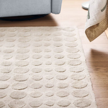 We call the Geo Dotty Area Rug a performer for good reason. With its simple yet impactful tone-on-tone ivory pattern, it works in a wide variety of spaces and styles. Two pile heights create dimension and warm texture. And while parents will appreciate the durability of its easy-care microfiber construction, kids will delight in the velvety-soft feeling underfoot.