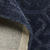 Subtle and sophisticated, our navy Valencia rug fascinates with an ornate geometry rendered in an array of textures. The understated pattern of interlocking diamonds and swirls is composed of high and low piles for an ultra-modern take on traditional designs. Handwoven by talented artisans, the tonal rug showcases deep blue hues. Our Valencia rug stands up to heavy traffic anywhere in the home - we especially appreciate its serene subtleties in a dining room or bedroom.