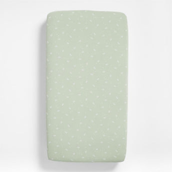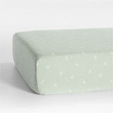 Our Supersoft crib fitted sheet combines breathability and warmth to keep little ones cozy. It's crafted using a double-layer weaving technique to create pockets of air that hold warmth. And the beautiful muted teal green hue with ivory leaf print brings a subtle touch of nature to their sleep space. Added bonus: It gets softer and fluffier after each wash. Complete the look with our matching Supersoft crib quilt and changing pad cover.