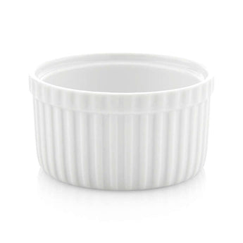 Durable, ribbed white porcelain adds classic style to a variety of foods. Ramekins can be used to bake individual desserts, serve snacks or pre-measure cooking ingredients—the uses are endless.