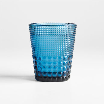 Inspired by 1950s drinkware, our clear Rhodes double old-fashioned glass serves up retro texture along with captivating color. The translucent blue glass squares off at the base, where the raised patterning transitions from tiny beading to a grid of convex squares. Fascinating to look at and great to hold, our Rhodes rocks glass livens up any occasion.