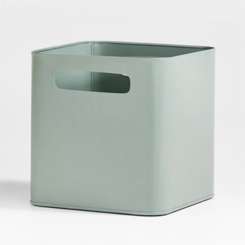 Contain anything and everything with our simple, stylish Outline metal storage bin. Designed for versatility and built to handle years of use, the sage green iron bin is deep enough to keep books upright, craft supplies organized or study essentials always where you need them. The fun color and rounded edges look great and slide into a bookshelf cubby or kid's desk. Cutout handles on each end are easy for little hands to grip. Our exclusive bin also serves as a video game storage solution for older kids.