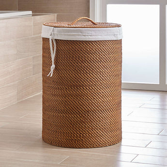 A washable white pure cotton canvas liner made to fit inside our Sedona hampers. A Crate and Barrel exclusive, this handy laundry bag also totes clothes and linens to the laundry room or laundromat thanks to its drawstring closure and wide, sturdy carrying strap.