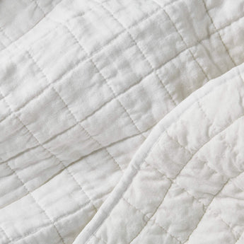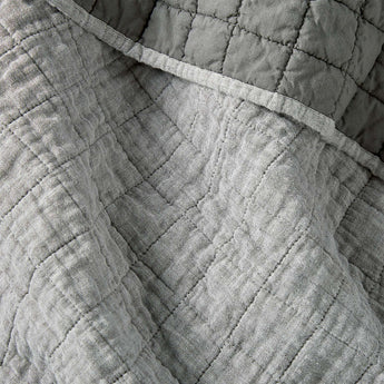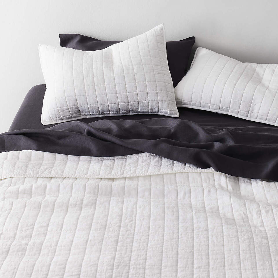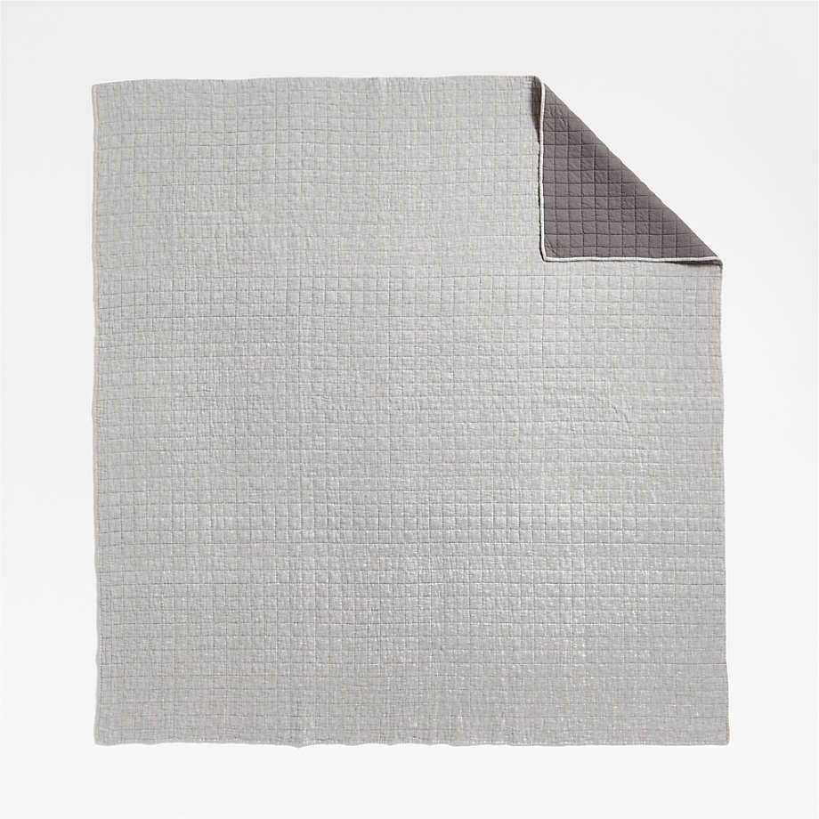 Pure linen chambray in softly variegated hues is quilted into a grid of 2" squares. Our Belgian flax linen bedding is finished neatly with self-binding tailoring. Backed with solid cotton percale and filled with pure cotton batting, our exclusive quilts and shams have modern organic appeal in subtle, sophisticated hues.