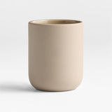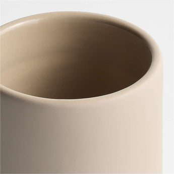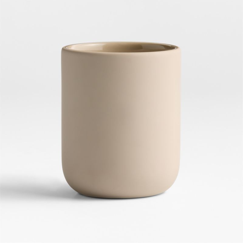Our Varick bathroom collection dips sturdy ceramic in soft-touch, sand-hued silicone that feels soft and luxurious. The gentle, minimalist curves and compact scale suit even the smallest powder room, guest bath or en suite. Subtly tinted in a muted caramel color that's warm yet modern, this tonal tumbler pairs a matte exterior with a glossy interior finish. Outfit bathrooms in all of our Varick accessories to create serene sanctuaries that are ready for company.