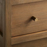 Refined and bold, Keane takes household storage to the next level. Scaled to create a stately presence in the office, living room or den, each piece is crafted of beautiful mahogany and meranti wood with a light driftwood finish that puts the focus on the wood. Three open shelves display books and collectibles, while a drawer and double-doored cabinet provides closed storage. Dotted with small brass pulls, the bookshelf's flat fronts and channel detailing on the sides enhance the clean, architectural design. Our best-selling Keane collection is a Crate & Barrel exclusive.