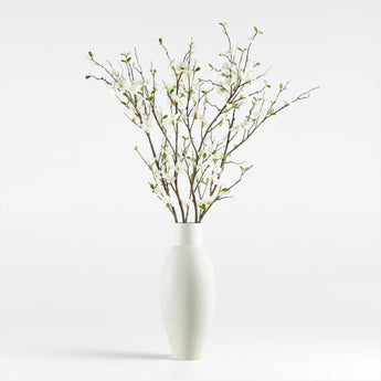 Our faux Bradford pear branch preserves the ephemeral beauty of spring to enjoy year round. Fresh and spriggy, the petite leaves provide an energetic backdrop for the ethereal white blossoms. Dainty thorns, pastel stamens and ultra-realistic twigs complete the textural, trompe l'oeil stem. A Crate & Barrel exclusive, our Bradford pear branch stands tall in a floor vase or joins our other faux botanicals in a lush springtime arrangement.
