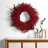 Countless ruby-like red berries animate our faux wreath with vibrant color and energy. Just as the petite berries provide an unexpected pop of color in the snowy winter landscape, our lifelike wreath invigorates your seasonal decor hung on an inside door or above a fireplace mantel. Our artificial red berry wreath is a Crate & Barrel exclusive.