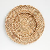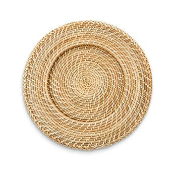 Handcrafted of 100% rattan, our Artesia natural charger is woven in a pattern known as hapao. Originating in a remote village in northern Luzon, the largest island in the Philippines, hapao is a traditional pattern used for bags and baskets. Over time, the colors used and shapes formed changed, though always celebrating the durability and beauty of the amazing fiber. This appealingly neutral natural finish emphasizes the texture and intricacy of the weave. The simple round mat hosts all kinds of dinnerware, the perfect finishing touch for the modern organic table. A lovely backdrop for your ceramic dishes, the rattan charger plate coordinates with other pieces