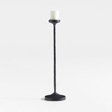 Our freestanding Maloy floor candle holder graces any spot in the home with atmospheric illumination and a touch of drama. Hand-hammered by skilled craftspeople, the black iron stand stretches a slender stem from a sturdy base to a platform top that accommodates taper and pillar candles. We love Maloy's unique texture and timeless presence in an entryway, hallway or any corner that could use an eye-catching accent.