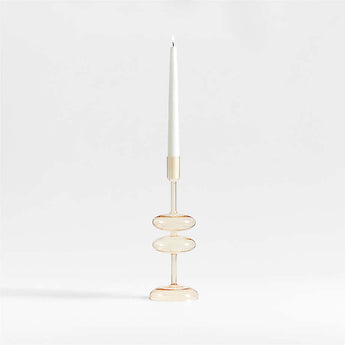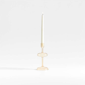 Inspired by mid-century modern glassware, our Venezia candle holder supports elongated bubbles on a slender stem for a sculptural-yet-playful silhouette. Hand-blown of palest yellow glass that reminds us of chilled champagne, the large candlestick supports a taperor doubles as a bud vase for dried and faux botanicals. Mix and match our exclusive Venezia candle holders in various heights and hues to create an extravagant effect on your dining table or mantel.
