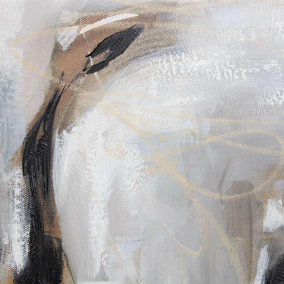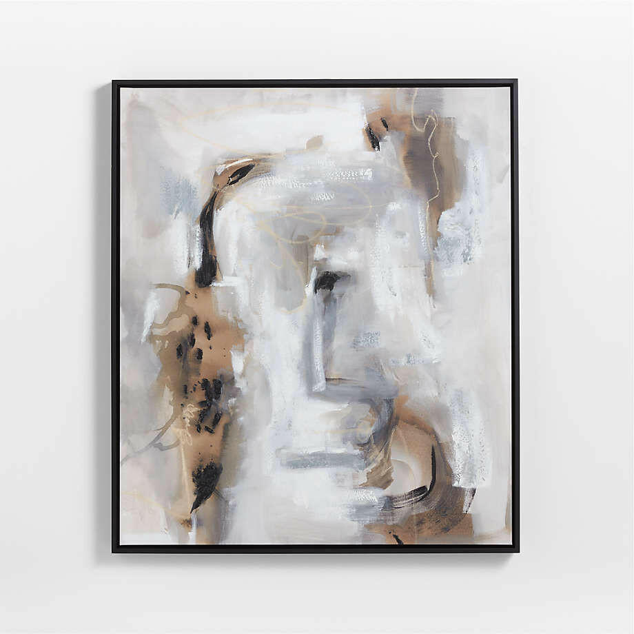 Using bold strokes, feathery marks and layered strokes of modulated color, Huda Hashim creates an abstract composition rich with movement. A neutral palette of browns, greys, white and black enhance the organic feel. We've captured all the vibrancy and detail of the original acrylic painting in our giclée print on canvas, enhanced with a slim wood frame.