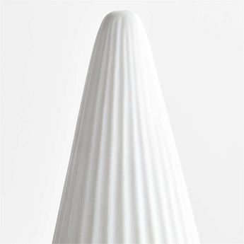 Coziness meets modern minimalism in our illuminated tree. Fluted to create shadow-enhancing dimension, the snow-white porcelain diffuses light from its integrated LED in an intriguing glow at once soft and linear. Create a sculptural and striking forest for a wintry mantel or holiday table by clustering this large conical evergreen with its smaller and larger counterparts or mixing and matching with our other exclusive decorative trees.