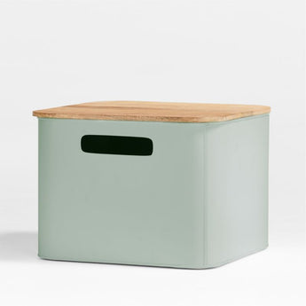 • Outline Sage Medium Metal Floor Storage Bin with Wood Lid