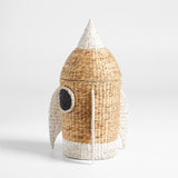 Blast away dirty clothes with our rocket hamper that makes room tidying fun. Woven of water hyacinth fiber, the natural-toned rocket sports a black porthole and a white base, wings and nose cone that makes it easy for little hands to open the lid.