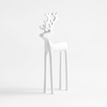 A zinc-white finish gives our signature reindeer a wintry silhouette. Long-legged with stylized antlers, our modern take on this holiday favorite is made of hand-cast aluminum. Clean and contemporary, the medium reindeer looks amazing on its own or grouped as a herd with its small and large counterparts. The white reindeer is a Crate & Barrel exlusive.