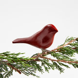Our ruby-red bird Christmas tree ornament brings the natural beauty of winter to your Christmas tree. Carved with simplified curves and streamlined style, the red wood Christmas tree ornament perches comfortably among the evergreen boughs thanks to its metal clip. Our wood bird Christmas tree ornament clip is a Crate & Barrel exclusive.