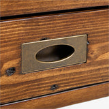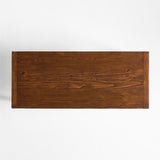 Morris reclaims pinewood pallets, expertly refinishing them to create this statement-making writing desk. Rustic refinement exudes from this polished piece, which is outfitted with metal inset pulls with an antiqued brass finish. ^ Sized on a smaller scale than its larger counterpart, the writing desk is ideal for an apartment or guest bedroom. The desk still provides ample storage with two drawers defining the length of the desk. The Morris 48" Chocolate Brown Writing Desk is a Crate and Barrel exclusive.