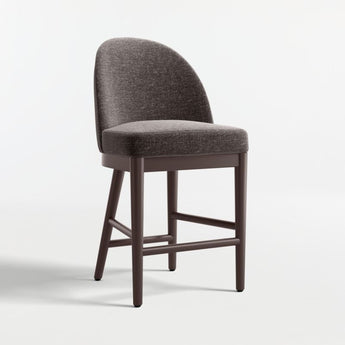 Our Ana counter stool's cutaway curves and generously cushioned seat gives you room to relax. Neatly upholstered in a softly textured performance fabric in charcoal, the tight seat and back cushions are supported by slim, turned legs finished in espresso brown. Ours exclusively, the Ana counter stool brings high style to kitchen counters and pub tables.