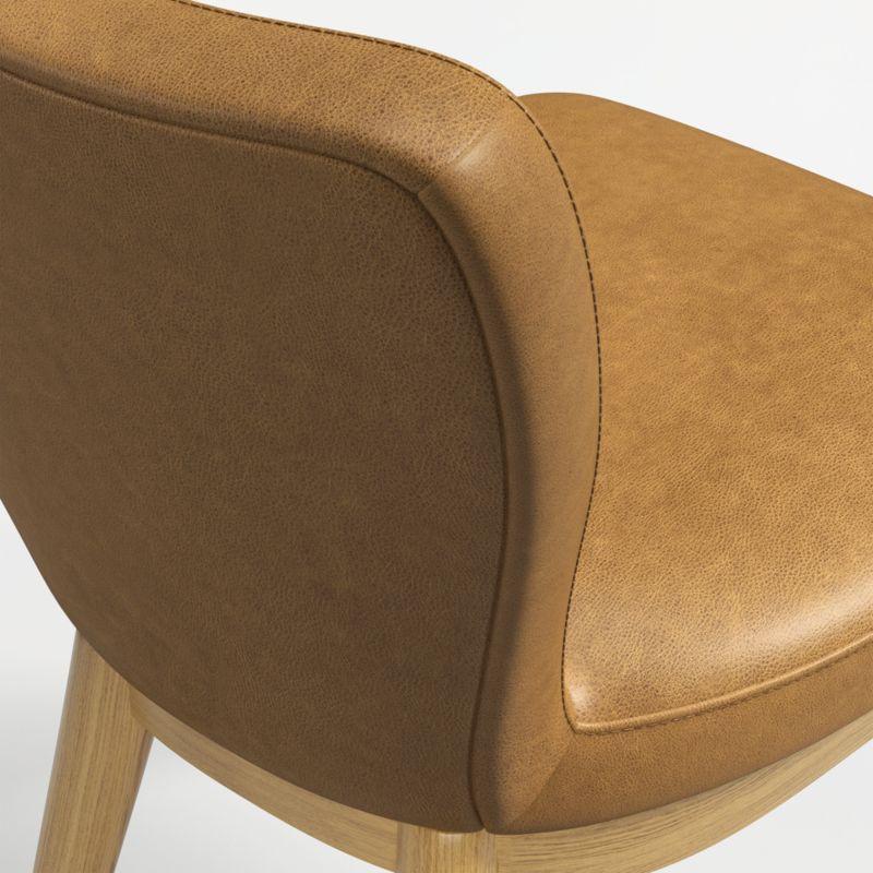 Our Ayers dining chair brings clean lines and organic forms to a timeless style. The midcentury modern inspiration takes shape in the subtle curved reverse camel back and the gracefully tapered ash legs. Comfortably padded for tableside lingering, the chair sits supportive yet soft. We love the contrast of the chair's sleek lines with the rustic look of our leather, rich with natural markings and wax-enhanced color.