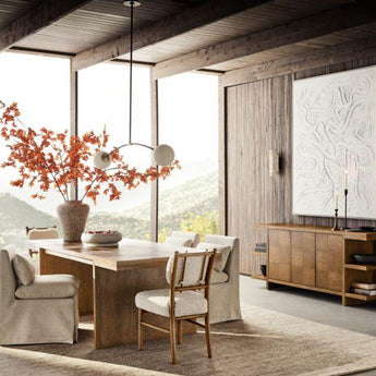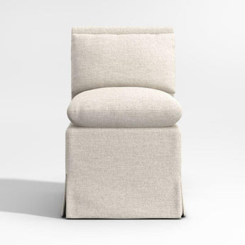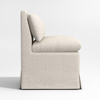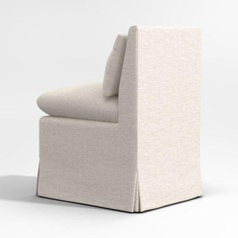 Made for lingering, our Belmar dining chair takes a breezy approach to mealtime. Layering on comfort with pillow back and seat cushions, the side chair is slipcovered in a ivory linen-like performance fabric smartly tailored with inverted pleats and a snug fit. Use the chair in multiples or pair with our Belmar banquette pieces for a flexible approach to kitchen or dining room seating.