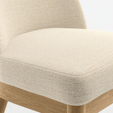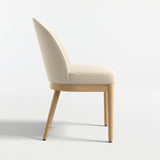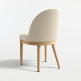 Ana's cutaway curves and generously cushioned seat give you room to relax. Neatly upholstered in a softly textured performance fabric in ivory, the tight seat and back cushions are supported by slim, turned legs with a natural finish. Suitable to a wide range of dining room decor, the Ana natural wood dining chair is a Crate & Barrel exclusive.