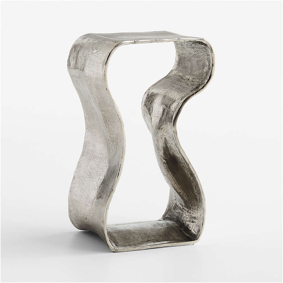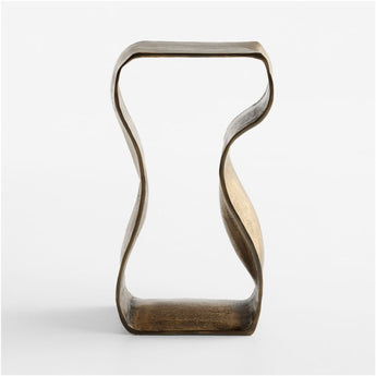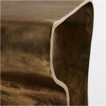 An undulating ribbon of cast aluminum gives fluid form to our Expressionist drink table. Designed as a continuous loop, the table shows off its organic swells and indentations with warm burnished brass finish. This eye-catching accent table tucks next to a sofa as a handy surface to set down a glass while also adding a dash of movement and artistic flair to the entire room.