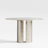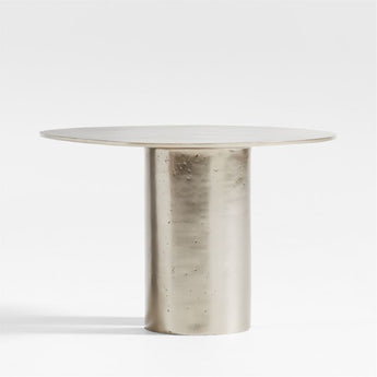 A lovely contrast to wood furniture, our Argent side table gleams in cast aluminum. The sculptural design places an organically shaped round top on a tall cylindrical base segmented by an open slice. The natural pitting of the casting process lends the table an industrial vibe, while the semi-polished nickel finish adds warmth and a soft glow. Nest with the Argent 20" table for even more impact.