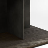 Preto captivates with strong lines and a fresh mix of materials. Mitered planes of blackened steel stress the vertical, intersecting to form the end table's X-shaped pedestal. Horizontal counterpoint is provided by squares of ebonized ash that serve as top and platform base with pillowed edges that soften the look of the modern, industrial aesthetic. Amp up Preto's impact by adding the coordinating coffee or console table (sold separately).