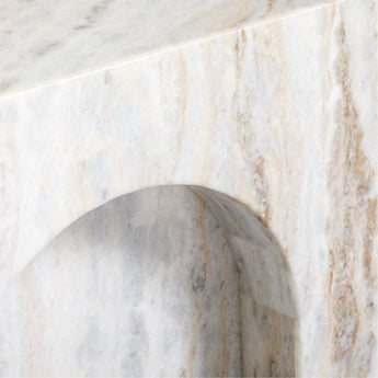 Triomphe makes it so easy to give your room an artful point of view. Tall arches carved into each face give the marble table a sculptural look while showcasing the wavy veining in grey, taupe and soft black that lends a sense of movement to the classic contours. Unique markings, coloration and crystalline fissures—prized characteristics of natural marble—make each Triomphe accent table truly one of a kind.