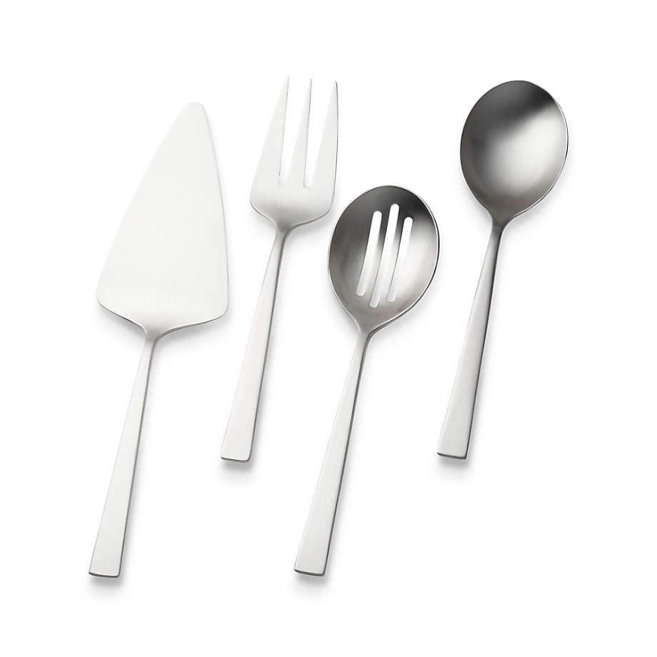 A bold, modern flatware statement. Simple designed serving pieces with a chic brushed finish complement our Clark flatware. Slightly concave top surfaces reflect the light.
