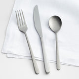 Understated curves and slender handles shape our modern-yet-timeless Craft flatware. Crafted of stainless steel that's been tumbled for a matte, textured finish and a beautifully lived-in look, the rustic-modern place setting elevates every meal, no matter how casual or chic. The dinner knife, dinner fork and teaspoon set an effortlessly elegant table accompanied by the other pieces in our exclusive Craft dinnerware, serveware and table linens collection.