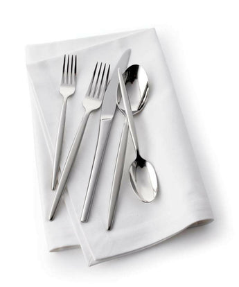 A pleasure to hold, Uptown's pencil-thin handles taper to a dramatic point. Continuous sweep of the coordinating knife throws in a contemporary curve.