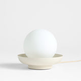 Create a timeless midcentury style moment in your nursery or kid's room with our sculptural Nello metal table lamp. The elevated design boasts a saucer-shaped shade and an elegant color combo of cozy grey and linen white. With its frosted globe, the lamp adds a cozy touch to any space