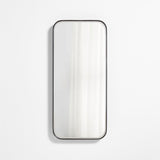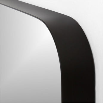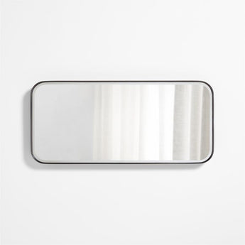 Edged with a wide black band, this minimalist wall mirror curves a bold rounded rectangle. The mirror hangs on the wall vertically or horizontally, its deep black-finished stainless steel frame doubling as a shelfa spot to display small decorative pieces or hold cosmetics as you get ready. With its modern, graphic presence, the mirror serves as jewelry for your walls while brightening the space. Group with our other Edge mirrors in contrasting or coordinating shapes and finishes to create an intriguing geometric display.