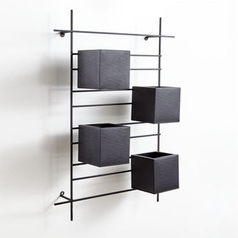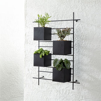 Our contemporary, architectural planter makes great use of wall space. Made of black-coated steel, four removable box planters can be arranged anywhere on the wall-mounted rails and will look amazing filled with small or trailing plants.