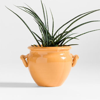 Our Genoa planters bring a touch of Italian sunshine to your indoor and outdoor plant displays. Hand-thrown by talented artisans in Italy, the generously curved urn shape is finished with hand-shaped coils that reference handles found on classical ceramics. The deep yellow glaze finishes the small earthenware pot with a glossy warmth we find irresistible. Each ceramic planter is uniquely gorgeous.
