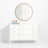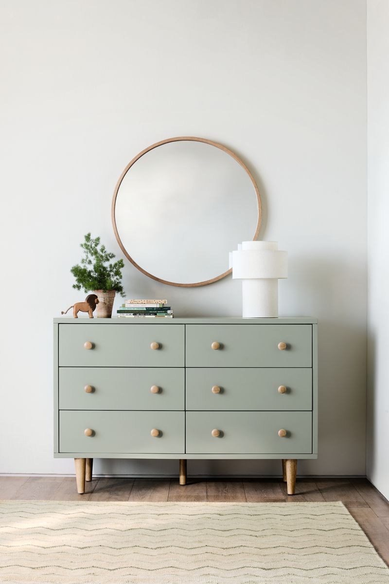 Edged with a slim band of wood, our Finn wall mirrors make a modern, minimalist design statement in the nursery or kid's room. The warm oak finish of the clean-lined, understated mirror blends seamlessly with a variety of our bedroom and nursery furniture collections.