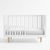 If you love the Scandinavian farmhouse style of our Finn crib, you'll definitely want to check out this coordinating guardrail. Made from solid poplar, it features the same clean lines and classic, gender-neutral white finish, so safely transitioning from crib to toddler bed is easy as 1-2-3.