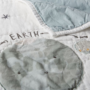 Want to get kids excited about bedtime? Layer their bed with a playful quilt that embraces what they love. Our Outer Space Quilt brings the solar system to life with colorful appliqued planets and embroidered details, from sweet little faces on each planet to "handwritten" fun facts. And the oh-so soft organic cotton keeps little ones comfy and cozy. Complete the look with our coordinating Outer Space Organic Cotton Sheet Set and Pillow Sham for a look that's out of this world.